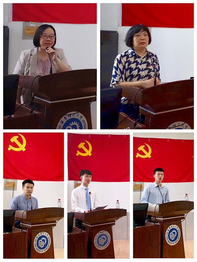 首先,毕业生党员代表作交流发言。本科生党员代表、我校2018“大学生年度人物”提名奖获得者、机设152班许良亮回顾了自己在华理和部队学习成长的6年岁月,表示加入中国共产党、成为一名光荣的中共党员是这6年间自己最为神圣庄严的一次身份变化。入职上汽大众之后,他将继续以党员的身份严格要求自己,在“两新”组织中发挥好党员的先锋模范作用,为母校争光;研究生党员代表、博士2班张尚林结合自身求职和在美国联合培养的经历以及当前国际形势,分享了他对于党员责任义务和爱国奋斗的理解。他放弃了上海科研机构的工作机会,选择赴四川成都中国核动力研究设计院就职,将个人的事业发展与祖国的需求紧密结合,让大家看到了新时代学生党员的责任和担当。