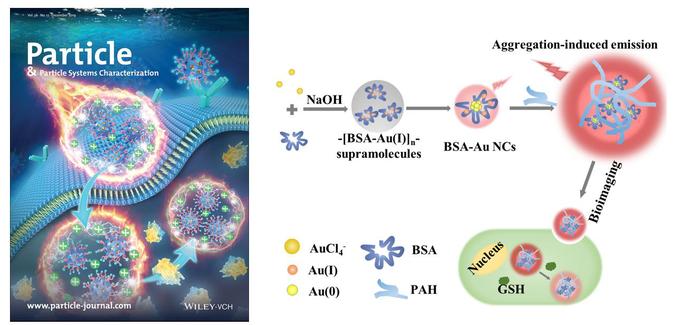 近红外发光的金纳米团簇是目前癌症诊疗一体化纳米载体的研究热点,为了推进实际应用,还需解决金纳米团簇低量子产率的问题。近日,我校机械与动力工程学院栾伟玲课题组在高量子产率近红外发光金纳米团簇制备方面取得新进展,相关工作以“Supramolecules-Guided Synthesis of Brightly Near-Infrared Au22 Nanoclusters with Aggregation-Induced Emission for Bioimaging”发表在Particle & Particle System Characterization上,并被收录为封面论文。