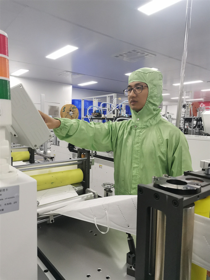 他上战场时女儿还只会说“猪猪”、“笔笔”、“水水”这样的叠词,70天后下车到家,他还没来得及开车门,就看见一位漂亮大方的小女孩一边开心地笑一边向他跑来,大喊着“爸爸……”,顿时他的眼角有些湿润了。不是因为他不想回家,而是疫情期间,技术人员紧缺,加上市场上的口罩供不应求,没有口罩防护,人民生命得不到保障,时间就是生命,他要与时间赛跑。
