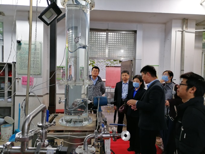 聂红副院长一行先后参观了分形气泡强化传质装置、海洋清洁生产装备平台以及承压系统与安全教育部重点实验室等,对分形气泡强化传质的基础研究工作给予了充分肯定,建议将研究成果“搬到”石科院的工程实验装置中,发挥过程强化与化工反应的协同优势,双方开展紧密科研合作,迎接中国制造转型挑战。