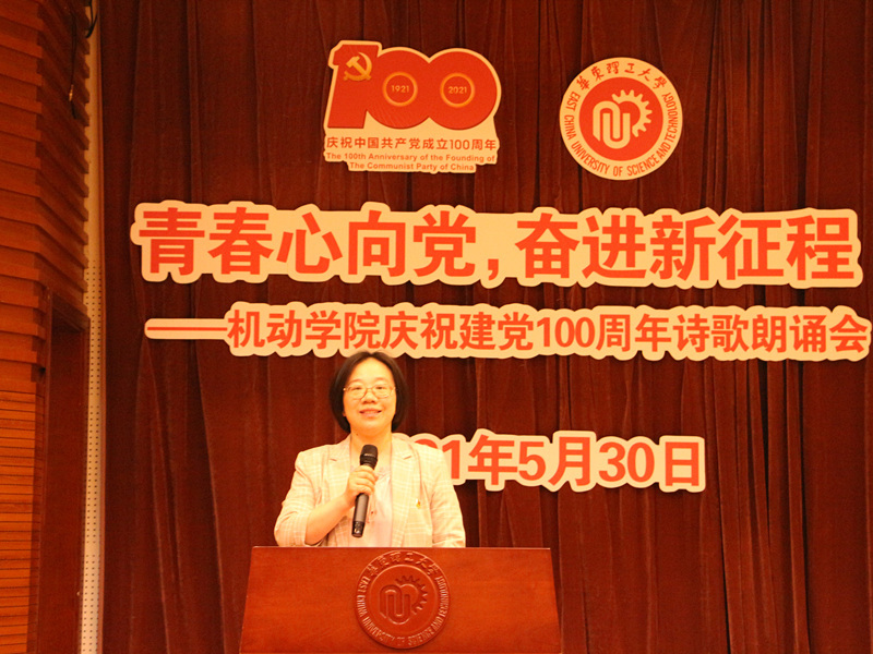 为庆祝中国共产党成立100周年,进一步激发全院师生爱党爱国热情,5月30日,机械与动力工程学院在奉贤校区敬贤堂举办以“青春心向党,奋进新征程”为主题的诗歌朗诵会。学院党委副书记杨倩、团委书记黄泽炀、本科生各年级辅导员、学生党员、发展对象、入党积极分子等近300人参加。学院安琦教授作为特邀嘉宾出席。