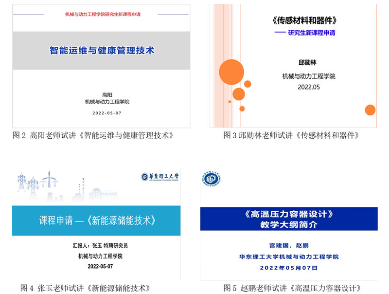 此次研讨的课程为高阳、邱勋林、张玉、宫建国和赵鹏等青年教师申请开设的《智能运维与健康管理技术》、《传感材料和器件》、《新能源储能技术》、《高温压力容器设计》 等4门课程。申请新开课程的教师,依次对个人情况、课程设置依据、教学大纲等方面进行说明,并进行了15分钟的课程内容试讲。