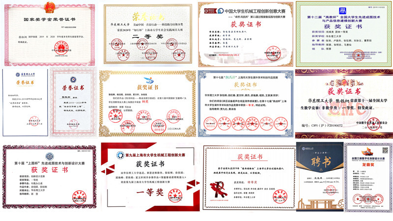 张钰炯,国家级大创智能餐桌清理机器人负责人,并参与了三段项目研究,获得中国机械工程创新创意大赛特等奖、全国大学生数学竞赛一等奖、“上图杯”全国一等奖、上海市创意机器人挑战赛特等奖、“挑战杯”上海市一等奖等六项国家级奖项、九项省部级奖项,发表EI论文一篇,申请专利四项。
