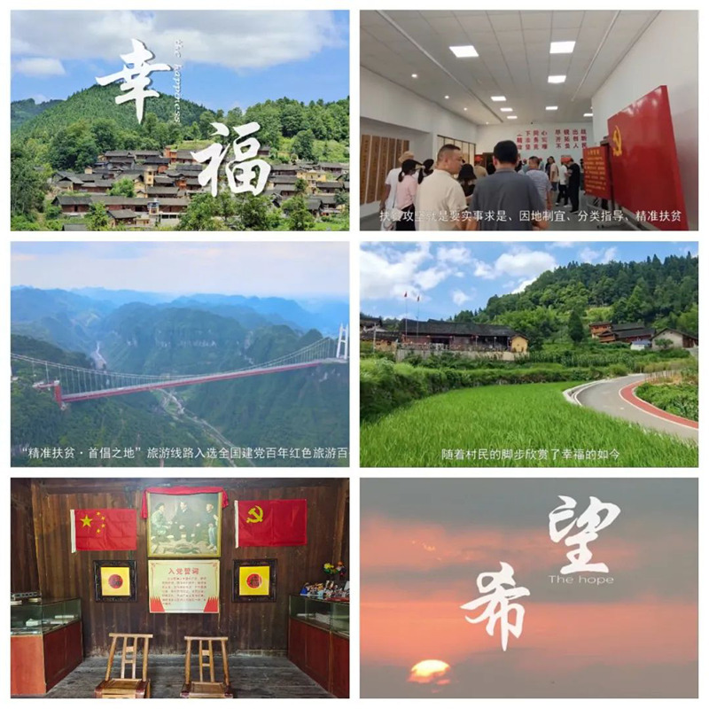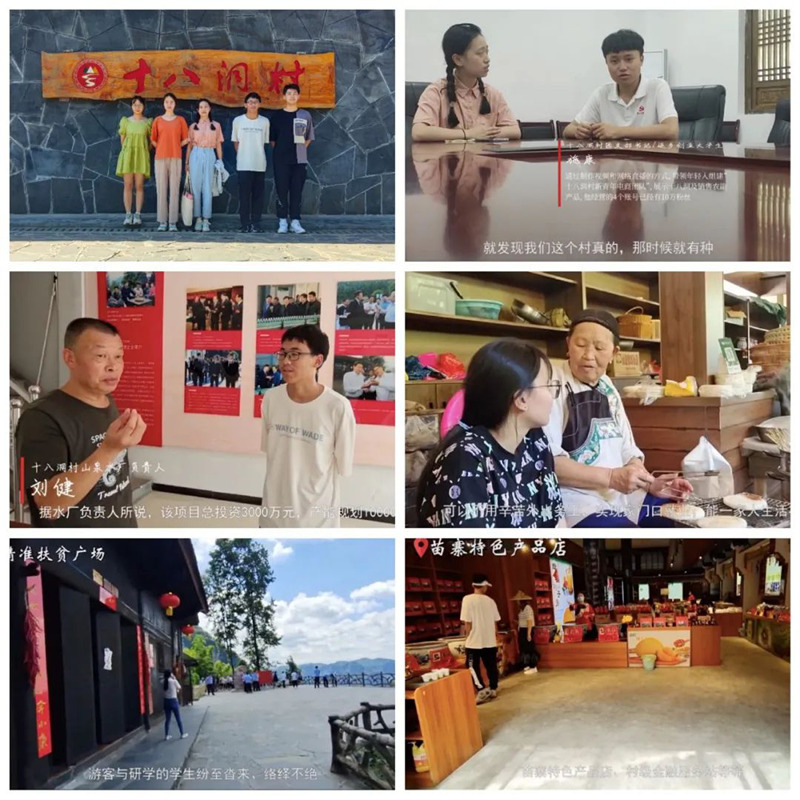 沿着习近平总书记考察的足迹,实践团走访了全国建党百年红色旅游百条精品线路——“精准扶贫·首倡之地”旅游线路,体验沉浸式党课,进一步学习习近平总书记重要讲话精神,感悟红色力量,传承红色基因。团队将搜集的素材和发展经验模型制成宣传片,利用微信公众号、抖音、哔哩哔哩等多平台广泛宣传、总结推广十八洞村的“精准扶贫”发展经验,收获阅读量10W+、获得超过10000+网络点赞好评,相关事迹被三下乡官网、中国青年网、中青校媒等报道。