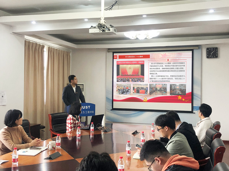 王曦晨同志的报告结束后,博士生第二党支部书记聂文睿回顾了本支部学习贯彻党的二十大精神开展情况。他表示,本支部积极响应党的号召,通过举办二十大报告学习研讨会、“师生共议二十大”联合组织生活会等一系列活动,积极推动学习宣传贯彻党的二十大精神往深里走、往心里走、往实里走。同时,本支部也积极与其他学生支部联动,共同推进党的二十大精神的学习宣传工作。院党委副书记李煜佳指出,本次会议是学习贯彻党的二十大精神的重要举措,是机动学院全面学习二十大精神的党课范式,也是将党的二十大精神广泛融入学生党员队伍建设,以高质量党建引领高质量发展的重要尝试。