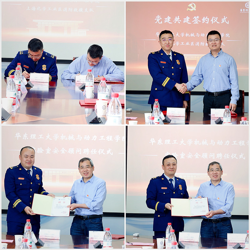 为深入学习贯彻习近平总书记在学习贯彻习近平新时代中国特色社会主义思想主题教育工作会议上的重要讲话精神,切实增强党建对实验室安全工作的引领作用,4月18日上午,我校机动学院党委与上海市化学工业区消防救援支队在实验十七楼308会议室举行了党建共建暨实验室安全顾问授聘仪式。上海化学工业区消防救援支队党委书记、政治委员孙海勃,政治部主任沈唯尉,组织干部科科长陈晨,队务督查科副科长陈柏江,防火监督科副科长夏增升,防火监督科助理工程师孙飞,机动学院党委书记杨强,副院长易建军、白志山、陈建钧及安全专业相关教师出席,活动由机动学院党委副书记李煜佳主持。