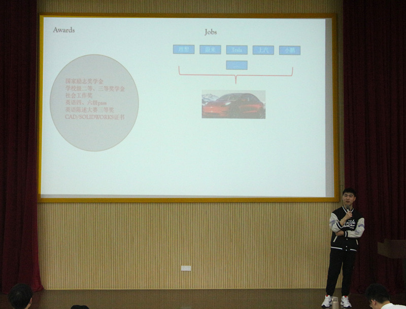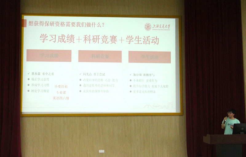 郑浩南现作为直博生就读于上海交通大学,蔡炜春现就职于特斯拉(上海)有限公司,两位优秀校友都以自身的成长经历,向同学们展示该如何规划未来的发展、做好当下的学习。郑浩南结合学习经历分享了为什么要读研,读研需要哪些品质,在大学期间如何以保研的目标提高自己。蔡炜春分享了自己的求职经历,以头脑风暴的形式发动同学们对自身职业规划的思考,并解读了大学期间的时间安排。