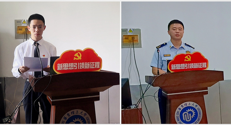 本科生第一党支部书记江其鹏毕业后将以选调生身份赴基层工作,他作为本科生毕业党员代表交流发言。他回顾了在本科期间连续三年参与防疫抗疫志愿服务和社会实践经历,用行动诠释了最美的奋斗青春。他表示,毕业后将继续秉承华理“勤奋求实,励志明德”的校训精神,牢记党员身份,将青春奋斗融入党和人民事业。校友陈柏江以学长的身份分享了自己求学、求职的心路历程,勉励毕业生党员兢兢业业做事、干干净净做人,在学思践悟中踔厉奋发,时刻发挥党员的模范带头作用,让青春在党和人民最需要的地方绽放,以更加优异的成绩回报社会、回报母校。