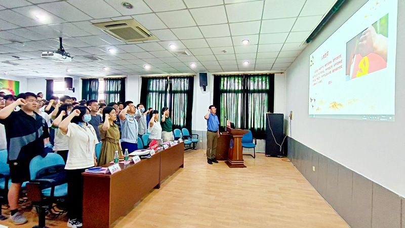 最后,全体毕业生党员在杨强的带领下,面对鲜红的党旗,高举右手庄严宣誓,重温自己对党忠诚的誓言,表达为党的事业奋斗终身的决心。
