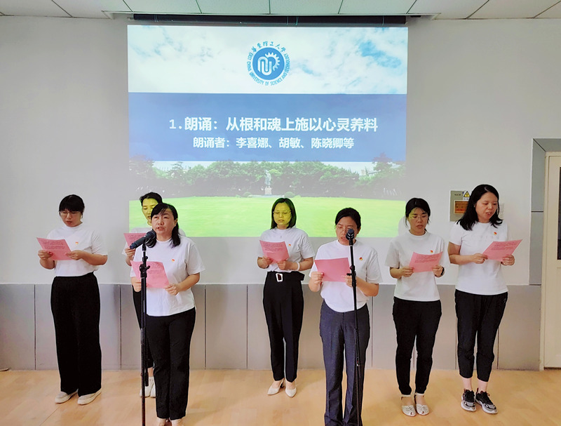 会议在《从根和魂上施以心灵养料》的朗诵中拉开帷幕,来自学院党政-学工教师党支部的教师们个个精神饱满、感情充沛,以丰富的内容、真挚的情感,让在场的教师们感受到身为教师的自豪感与做学生为学、为事、为人的大先生的担当使命。
