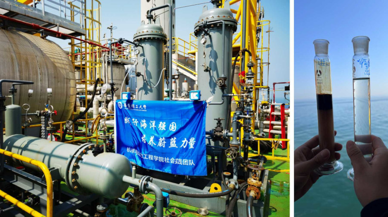 为提升海洋科技自主创新能力,推动海洋石油开发绿色低碳转型,7月1日-8月3日机械与动力工程学院“践行海洋强国,培养蔚蓝力量”团队赴南海、渤海等重点海域海洋平台,围绕海洋石油开采过程全流程水质图谱的完善和采出液短流程处理工艺及高效处理装备的升级开展社会实践活动。