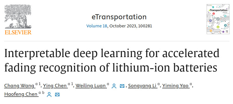 9月4日,我校机械与动力工程学院、先进电池系统与安全重点实验室栾伟玲教授课题组与我校国家高层次人才、讲席教授陈浩峰教授合作,在全球交通科学与技术领域顶级期刊eTransportation发表了题为“Interpretable deep learning for accelerated fading recognition of lithium-ion batteries”的研究论文,首次提出了一个用于锂电池寿命预测相关的可解释性深度学习框架。