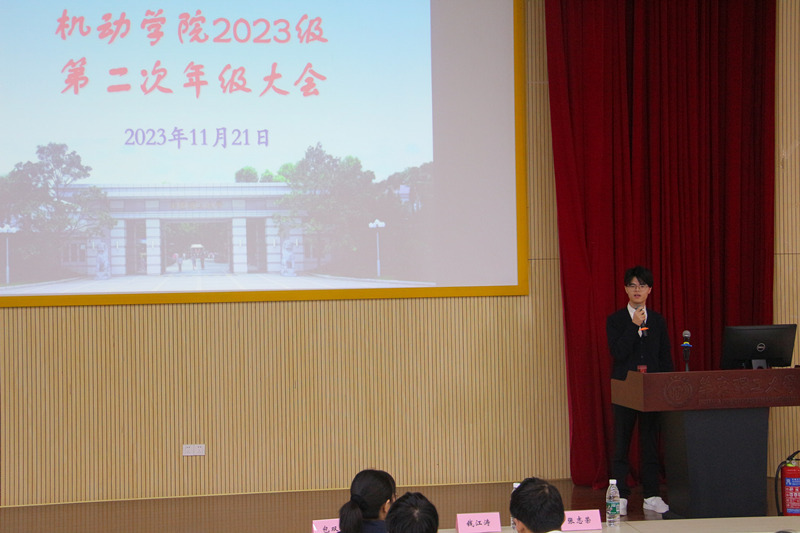 11月22日,机动学院召开2023级安全主题年级大会。上海市化学工业园区消防救援支队政治指导员钱江涛,上海市奉贤区高校派出所警官张志荣,2023级本科生辅导员唐光泽、王志文以及学院2023级全体本科生共370人参会。
