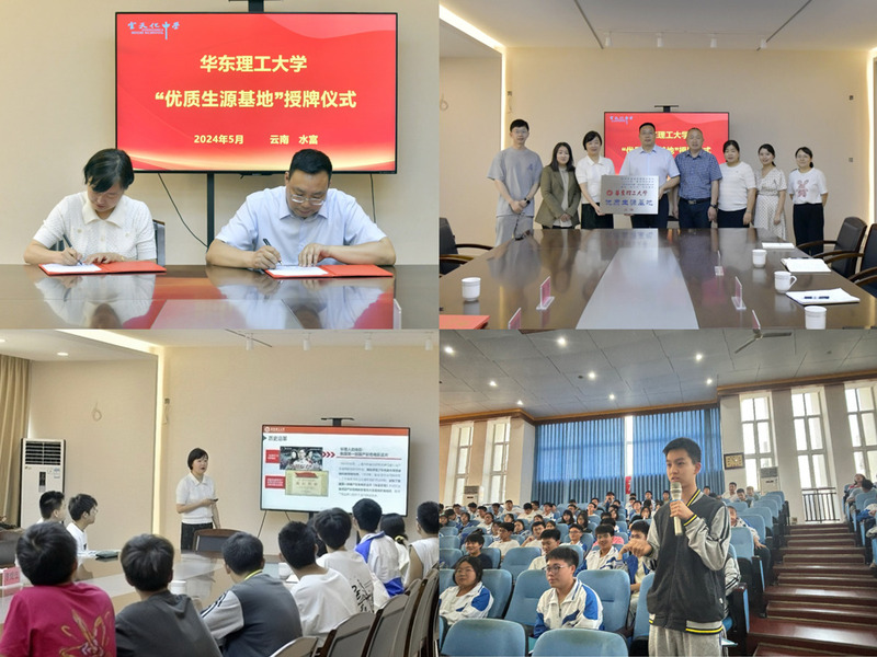 16日,在云南省云天化中学党委副书记、高中部校长孟雄,生涯发展中心分管领导王金萍,生涯规划中心副主任凌征丽等的接待、陪同下,李煜佳一行首先赴水富市开展招生宣传和优质生源地签约授牌活动。云天化中学创办于1976年,前身是云天化集团子弟中学,目前是云南省一级一等完全中学,在省教育教学质量评比中长期位居前五,为我校输送大量优质人才。此次优秀生源基地的签约与授牌是对两校长期合作、共育英才的诚挚肯定,也是面向 “新高考”、共同探索“高中加高校”协同育人新模式、新路径的新起点。