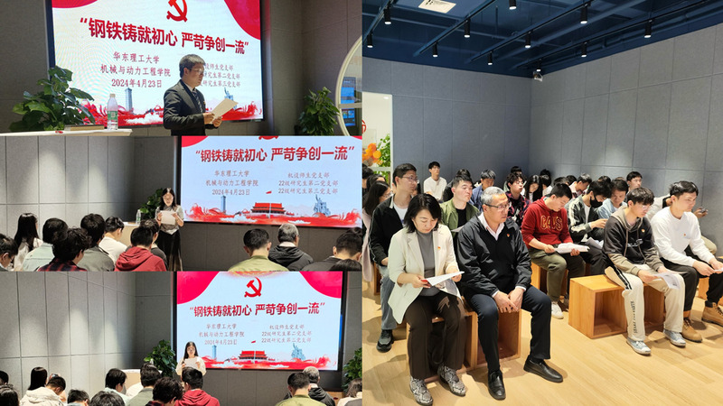 在宝钢工业创享园党性教育体验中心,机设师生党支部副书记邵聪鹏、22级研究生第二党支部书记吴依婷、22级研究生第三党支部书记高妍分别以“什么是新质生产力”、“教育、科技、人才协同支撑强国建设”、“科教兴国战略助力中国式现代化”为主题开展专题党课。通过专题党课的学习,现场师生党员对“新质生产力”“科教兴国”“人才强国”的内涵有了更加深入的领悟,进一步提高了政治站位,深化了思想认识,强化了责任担当。