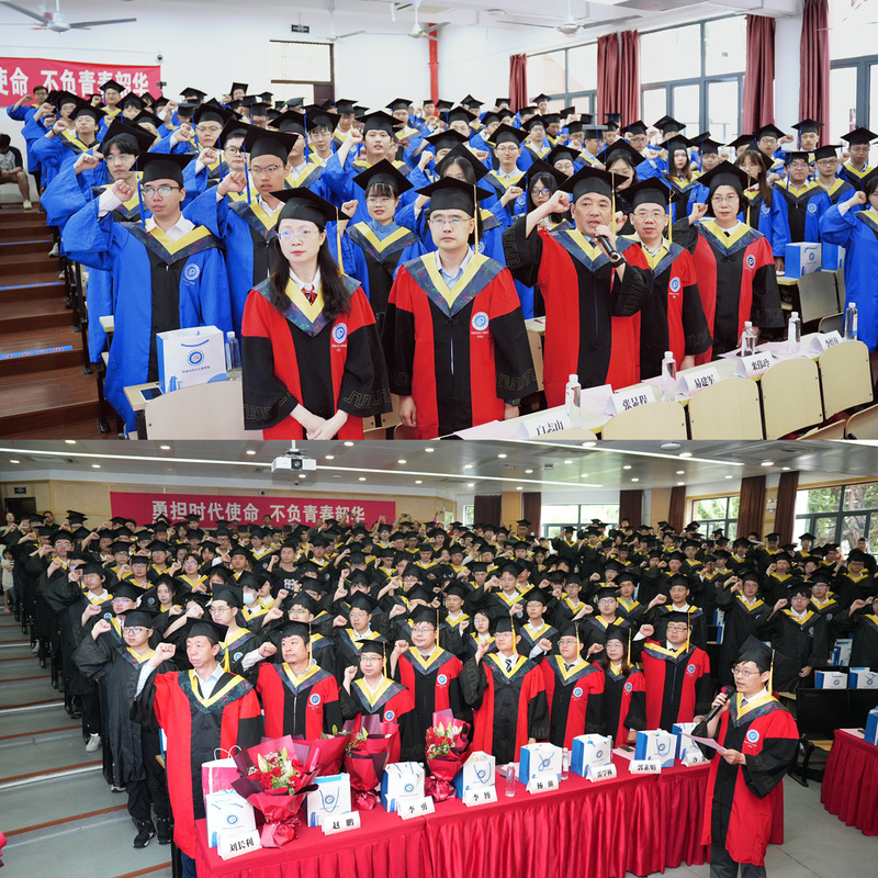 院党委书记杨强、院长张显程代表学院向全体毕业生殷切嘱咐。杨强寄语每位毕业生以“担当”为本,“实干”为基,“磨砺”为剑,在新的征程中,以青春之我,逐华夏之阳,把个人梦想汇入时代洪流,在奋力奔跑中成就更强大的自我,让蓬勃青春与家国情怀共振。恰逢邓稼先先生诞辰100周年,张显程以“百年未有之大变局,以不确定时代背景下的确定性品质”为题,勉励毕业生们家国情怀,思辨能力和创新精神三种品质的塑造与坚守。