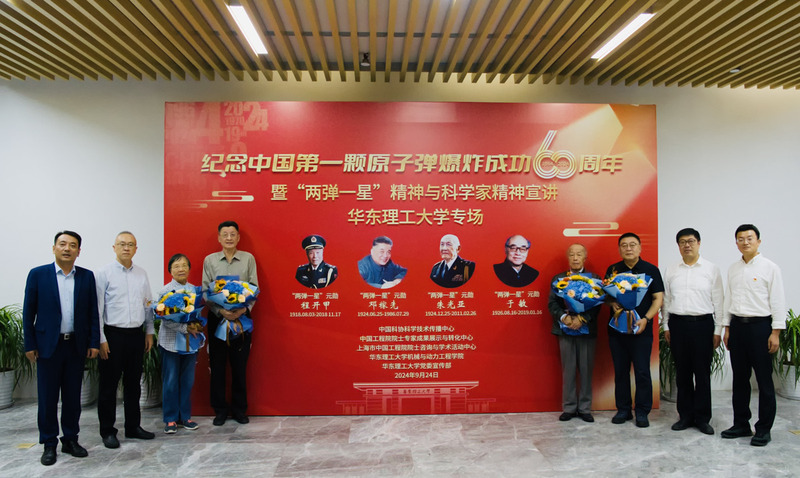 为传承红色基因、学思践悟中国共产党人精神谱系,9月24日,“两弹一星”元勋程开甲院士之女程漱玉研究员、邓稼先院士之子邓志平教授、朱光亚院士之子朱明远研究员、于敏院士之子于辛高级工程师在徐汇校区宣讲“两弹一星”精神与科学家精神。校党委副书记沈海涛,校长办公室主任、党委宣传部部长柴华,机动学院党委书记杨强、院长张显程出席活动。本次宣讲由机动学院院长张显程主持。