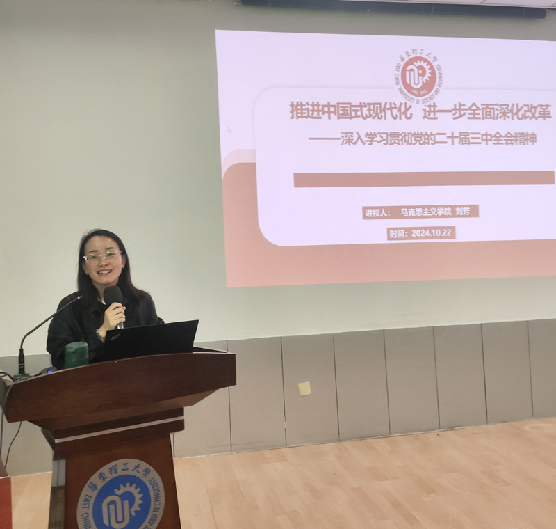 10月22日下午,机动学院召开深入学习贯彻党的二十届三中全会精神专题学习会。会议特邀华东理工大学马克思主义学院副教授、党委委员、工会主席刘芳作题为“推进中国式现代化,进一步全面深化改革——深入学习贯彻党的二十届三中全会精神”的专题辅导报告。会议由机动学院党委副书记李煜佳主持。