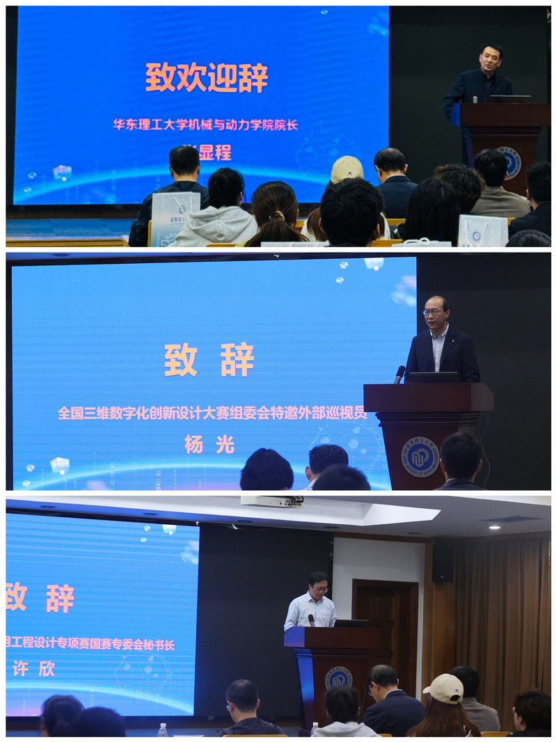 10月27日,2024第17届全国三维数字化创新设计大赛“云道杯”CAE仿真应用工程设计专项赛(上海赛区)选拔赛在逸夫楼演讲厅开幕。全国3D大赛组委会特邀外部巡视员、河北科技大学杨光院长,北京云道智造科技有限公司创新部副部长许欣,华东理工大学机动学院院长张显程,同济大学刘广军教授,上海大学河斌教授,东南大学刘小超教授以及多所高校的师生参加了本次开幕式。开幕式由机动学院副院长陈建钧主持。