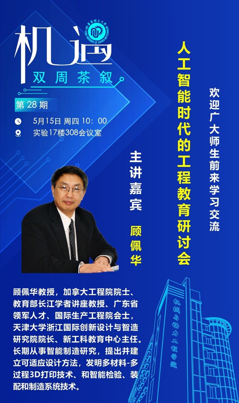 顾佩华教授,加拿大工程院院士、教育部长江学者讲座教授、广东省领军人才、国际生产工程院会士,天津大学浙江国际创新设计与智造研究院院长、新工科教育中心主任。长期从事智能制造研究,提出并建立可适应设计方法,发明多材料-多过程3D打印技术、智能检验、装配和制造系统技术,是Frontiers of Mechanical Engineering、Chinese Journal of Mechanical Engineering、工程设计学报、Robotics and Computer Integrated Manufacturing、Current Engineering Research and Application 等多个学术期刊编委。