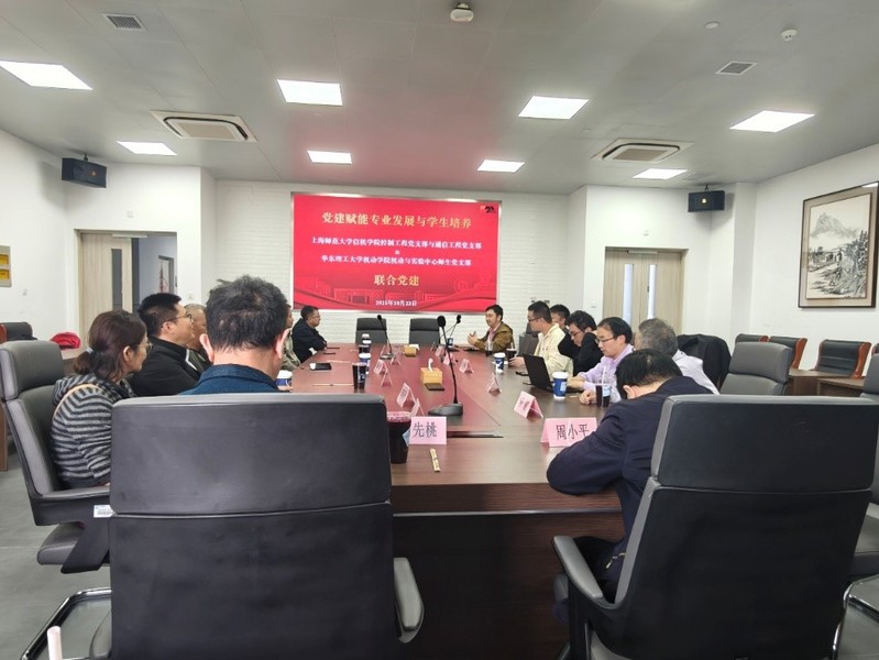 为深入学习贯彻习近平新时代中国特色社会主义思想,落实新时代党的建设总要求,充分发挥党建引领作用,推动党建与业务深度融合,10月22日,学院机设与实验中心师生党支部与上海师范大学信机学院控制工程党支部、上海师范大学信机学院通信工程党支部联合开展“党建赋能专业发展与学生培养”主题党日活动。上海师范大学信机学院党委委员、办公室主任、工会主席黄诗旸,控制工程党支部书记高喆,我校机动学院副院长陈建钧、机械实验教学中心主任吴清,以及双方党员代表共20余人参加活动。