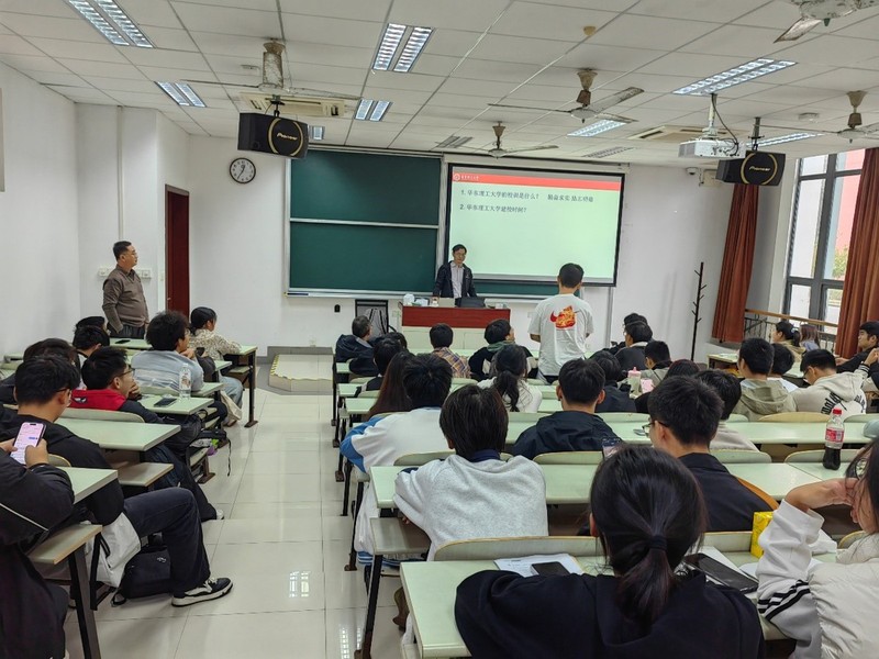 陈建钧首先向来自安徽、云南两省的2025级新生表示热烈欢迎,并为大家介绍了华东理工大学的悠久历史以及在新中国发展历程中取得的代表性成就。他鼓励同学们珍惜大学时光,勇于探索、积极创新,尽早明确个人发展方向。随后,现场开展了关于校史文化与校园概况的趣味问答,同学们踊跃参与、积极抢答,现场气氛十分活跃。高年级优秀学生代表——智造233班陈瑞、过程233班苏琪、机设232班刘宸瑜和机设234班薛东,分别结合自身经历,分享了在学习规划、社团活动和校园生活等方面的体会与建议,为新生提供了有益参考。